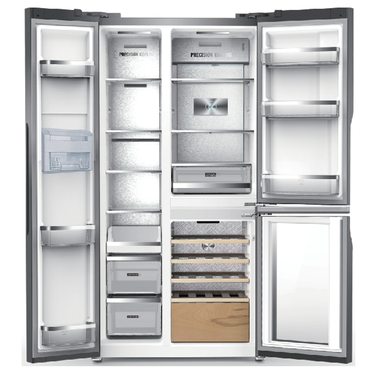 მაცივარი და საყინულე შავი მინის კარით